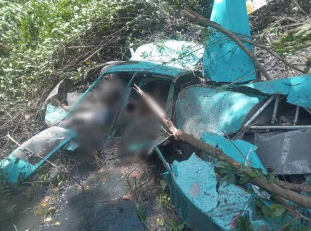 Segundo os bombeiros, a aeronave caiu em uma área de mata. Um helicóptero com três passageiros caiu na tarde deste